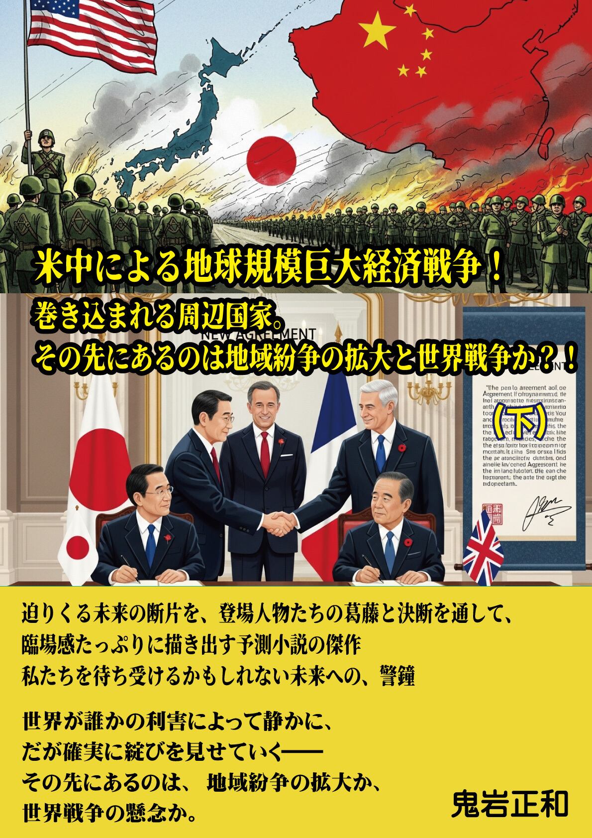 最終章では、各国リーダーたちの決断が、未来の道をどのように形作るのかを探求します。彼らの選択がもたらす結果から、私たち自身が何を学び、どのように行動していくのかを改めて考える材料となります。「米中による地球規模巨大経済戦争!」は、単なる物語ではなく、私たちの意識を揺さぶる警鐘といえるでしょう。変容の時代に私たちがどのように向き合うのか、一緒に未来を築くための知恵を得ることができることでしょう!